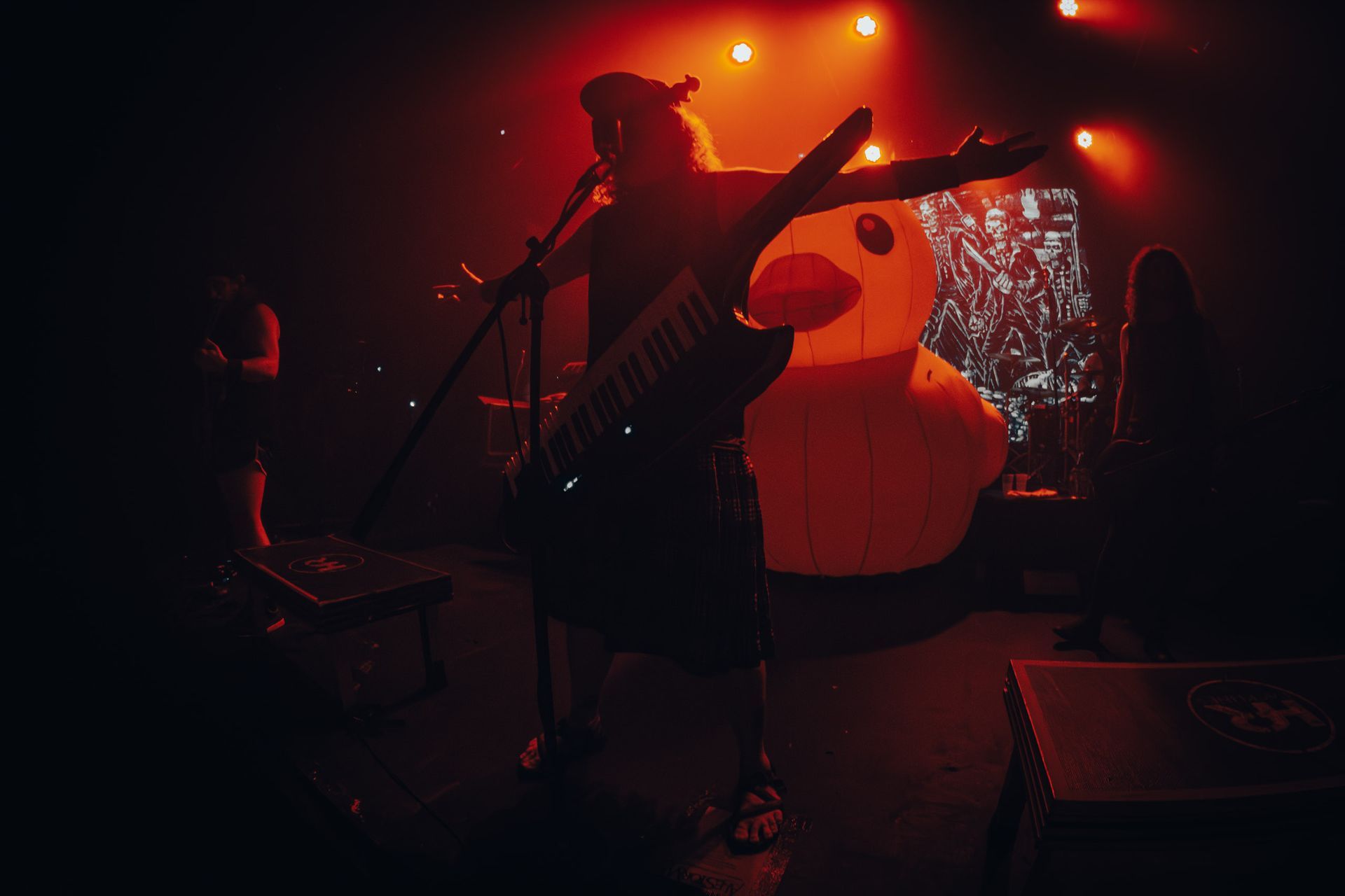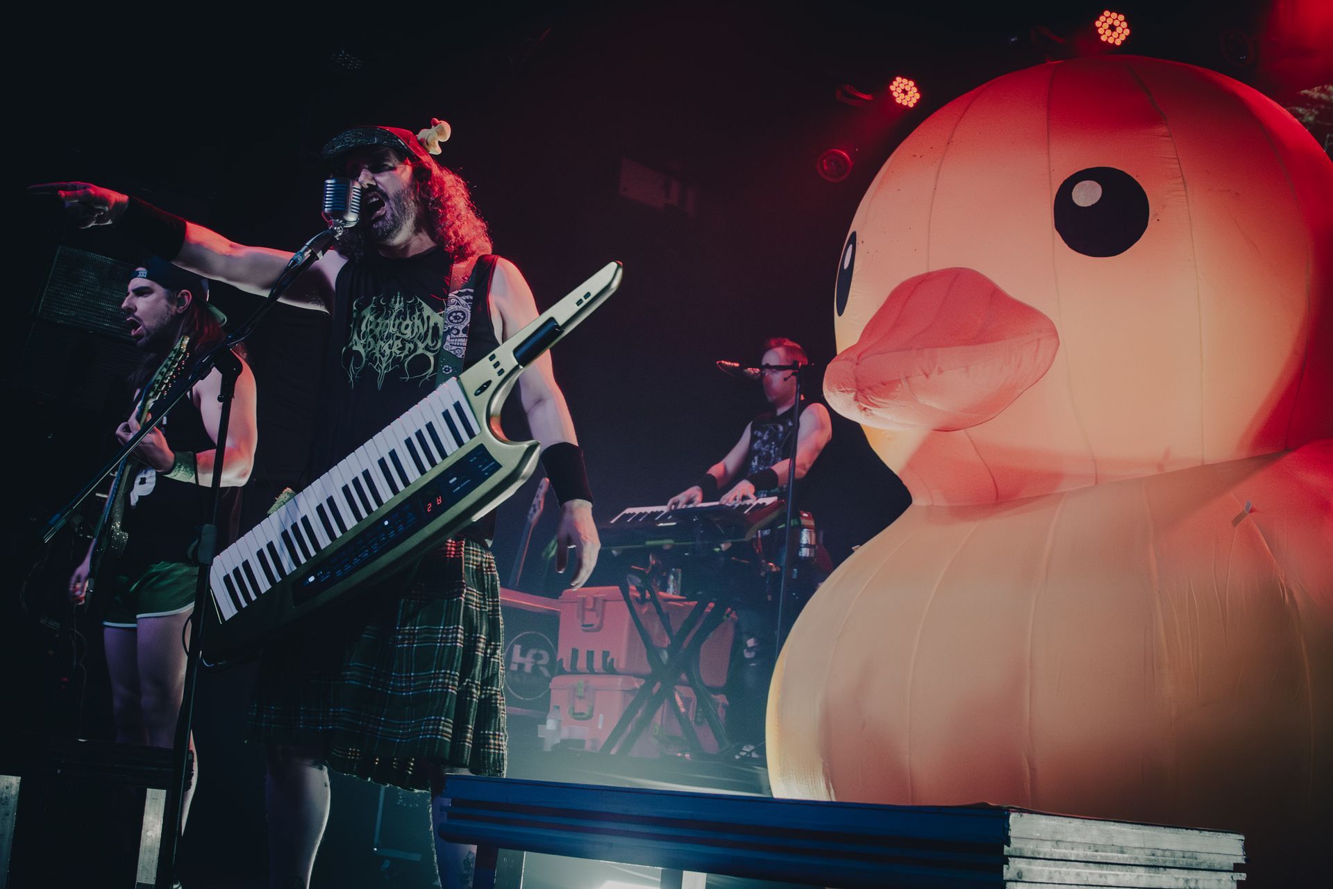 No palco, um único elemento de cenografia que roubava a cena e denunciava que aquela noite seria dedicada à cantoria, aos “ahoy’s” e ao “andar na prancha”: o inigualável patinho de borracha amarelo, clássico não só para os profissionais de T.I., mas também para os fãs e o próprio Alestorm.