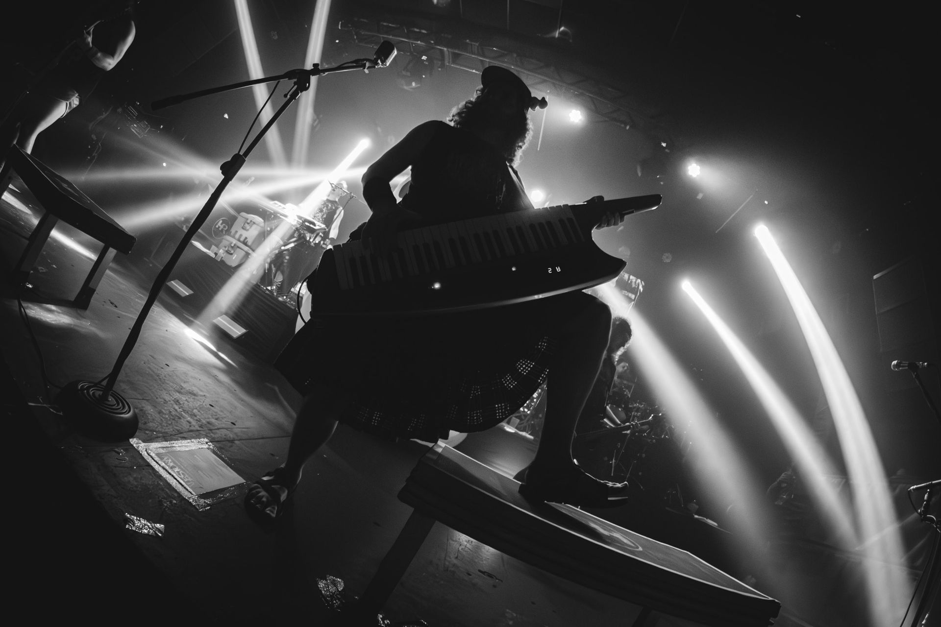 Texturas essas que eram bem vívidas também nas camadas sonoras, em especial no dueto entre Christopher e Elliot. Fosse entre a voz áspera e direta de Bowes, os guturais potentes de Vernon ou a “conversa” entre teclado e keytar, somados às rítmicas batidas do bumbo de Peter, que ditavam muito bem o ritmo, o resultado era um material muito divertido. E não que Bodor ou Murdock não tivessem seu mérito — afinal, fosse na tarefa de ancorar o ritmo no baixo ou viajar junto com riffs grudentos e solos rápidos, ambos desempenharam muito bem suas funções —, porém é inegável que, somado a tantas camadas e texturas e ao estilo de música próprio dos “chants” ou corais de vozes, diferentemente de outros estilos em que o protagonismo desses instrumentos é mais aparente, no show do Alestorm isso não é algo que se destaque ou se sobressaia necessariamente.