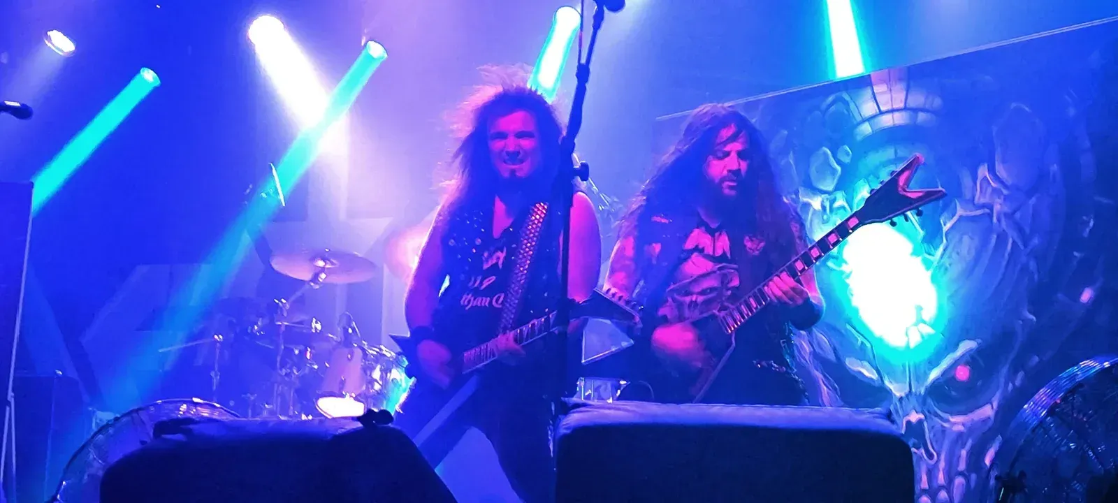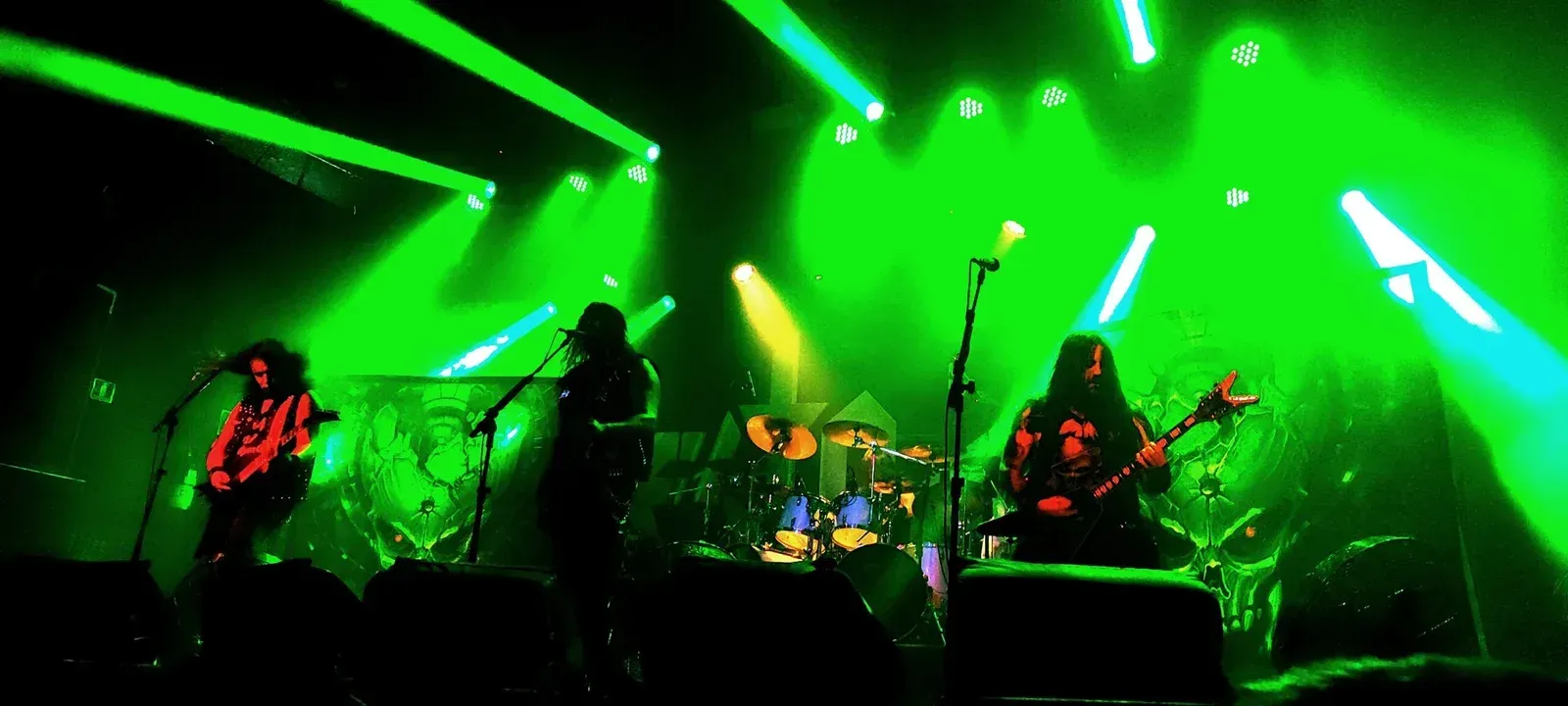 Após um breve intervalo, às 20h35, a lenda alemã entrou em cena com todo o impacto esperado, levando o público à loucura. Com um caloroso “Boa noite” em português de Schmier, os portões infernais foram abertos ao som de Curse the Gods. Já nos primeiros acordes, corpos eram comprimidos contra a grade enquanto uma brutal roda se formava no meio da pista. Com um setlist recheado dos melhores momentos dos 40 anos de história da banda, a noite representou um verdadeiro desafio para os seguranças da casa, que, acostumados a afirmar que “show de rock é sempre tranquilo”, foram pegos de surpresa pelas invasões de palco, crowdsurfings que terminavam com alguém caído após a grade e tentativas de stage diving frustradas pela distância entre palco e público, e pela presença constante de seguranças no perímetro tentando controlar o movimento incessante.