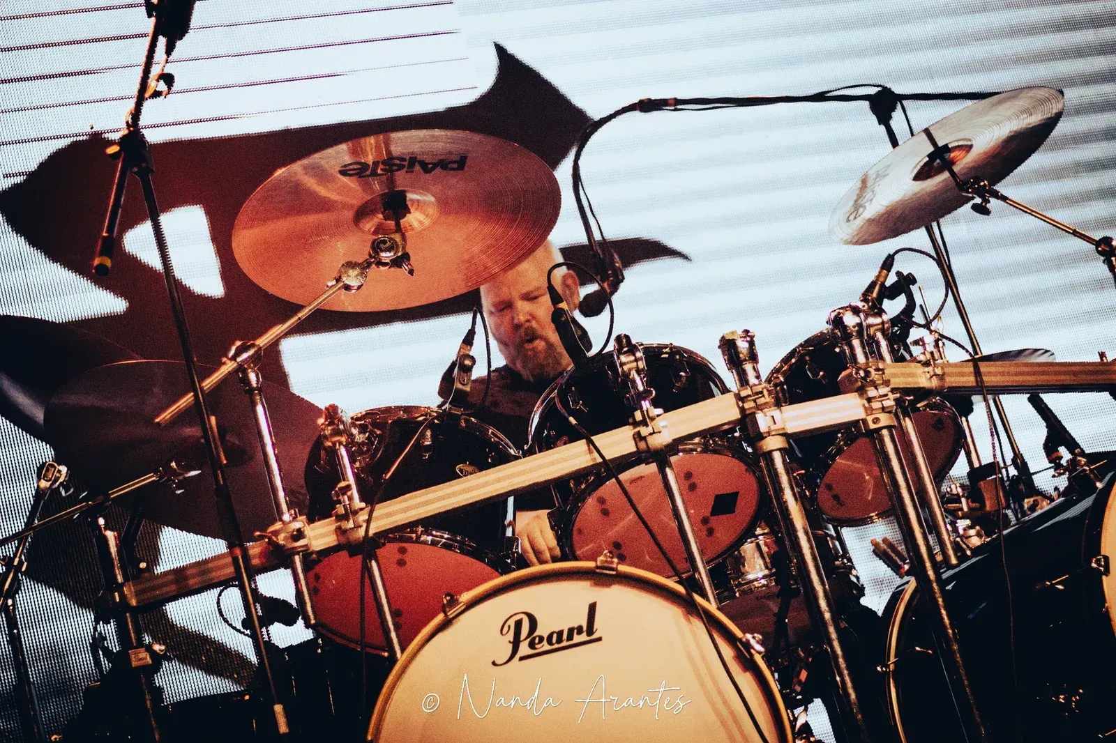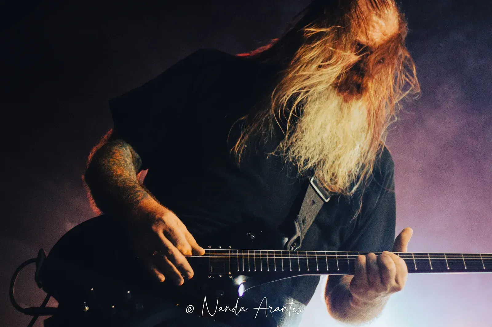 À medida que os músicos iam se sentindo mais confortáveis e se soltando, tivemos brincadeiras de Kjellson sobre aprender a dançar “Rumba” e as correções de Iver, dizendo que seria “Samba”, seguidas pela resposta de Kjellson sobre precisar aprender “mesmo assim”. O clima era leve. Reforçando o momento como sendo o “início de uma boa amizade” era visível o quanto o Enslaved se sentia bem, aquecendo e animando o público que gritava e aclamava os músicos. Não fosse pelos riffs pesados e os guturais marcantes, você talvez nem diria se tratar de um show de Black Metal.