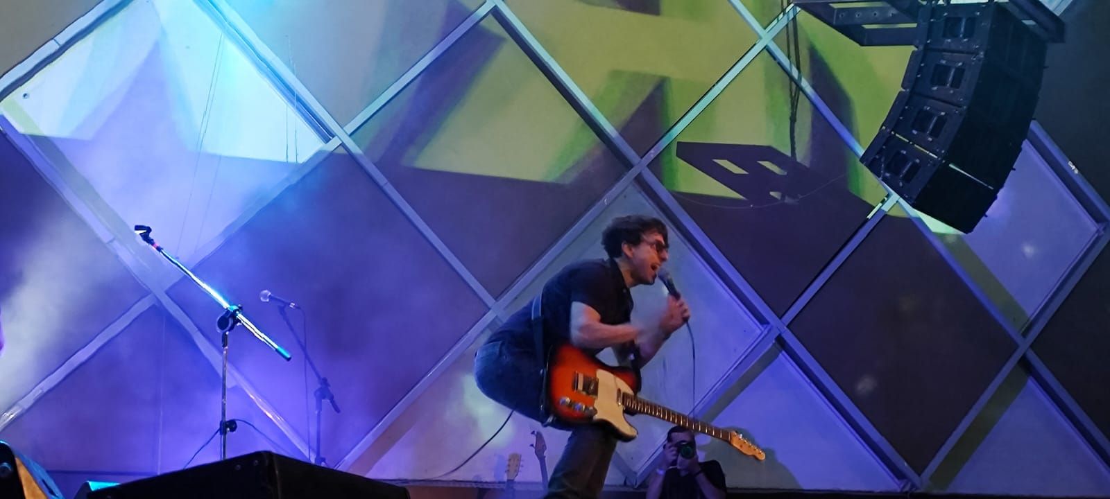 O tempo todo, Mario ainda pontuava a alegria por estar ali tocando pela primeira vez no Cine Jóia, e isso era visível em sua energia, indo de um lado para o outro e até descendo no nível inferior do palco, se aproximando o máximo possível do público, quando não estava no maior estilo shoegaze, se projetando também para baixo, agachando e dando curtos saltos ao longo do show. Houve um momento em que chegou até a brincar sobre estarem em começo de carreira, o que realmente era um reflexo de qualidade de entrega que só o tempo e a experiência trazem.
