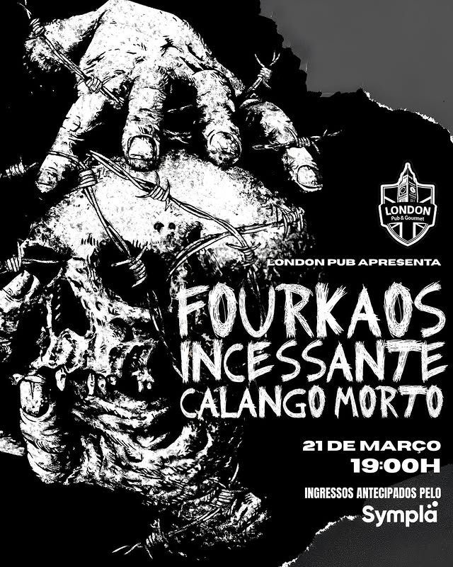 Os ingressos antecipados estão disponíveis em: https://www.sympla.com.br/evento/fourkaos-incessante-calango-morto-london-pub/3320131