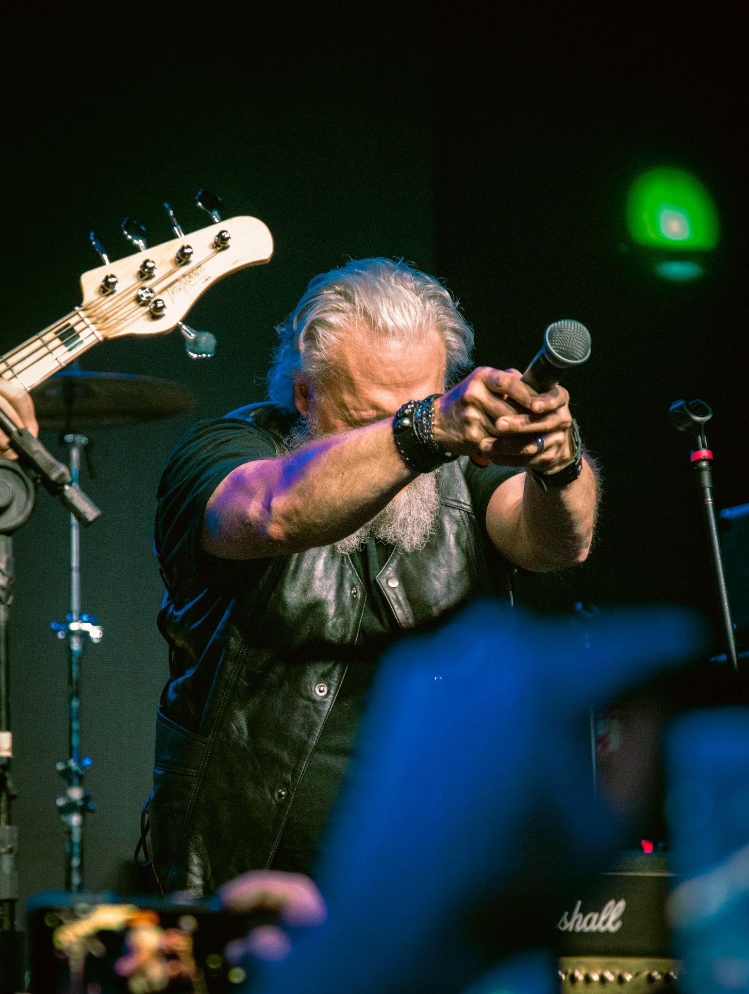 Continuando trazendo peso e cadência (e a volta do óculos de vilão steampunk de desenho animado do vocalista Dale Thompson) e contemplando o resto de sua discografia, veio Beast de seu álbum de 1994 e Million Miles, cartão de visita de seu ambicioso álbum duplo deste ano, Vipers and Shadows. Para uma música nova, recentemente testada nos palcos, foi muito bem recebida. Voltando aos clássicos, Everybody Knows My Name e Scarecrow mantiveram a energia lá no alto, reforçando não só a presença de palco incrível do vocalista, que engajou bem o público todo, mas também sua voz estratosférica, que mesmo com mais de 60 anos ainda atinge agudos estonteantes. Durante Scarecrow, Dale inclusive tirou uma pequena câmera do bolso para gravar sua própria performance.