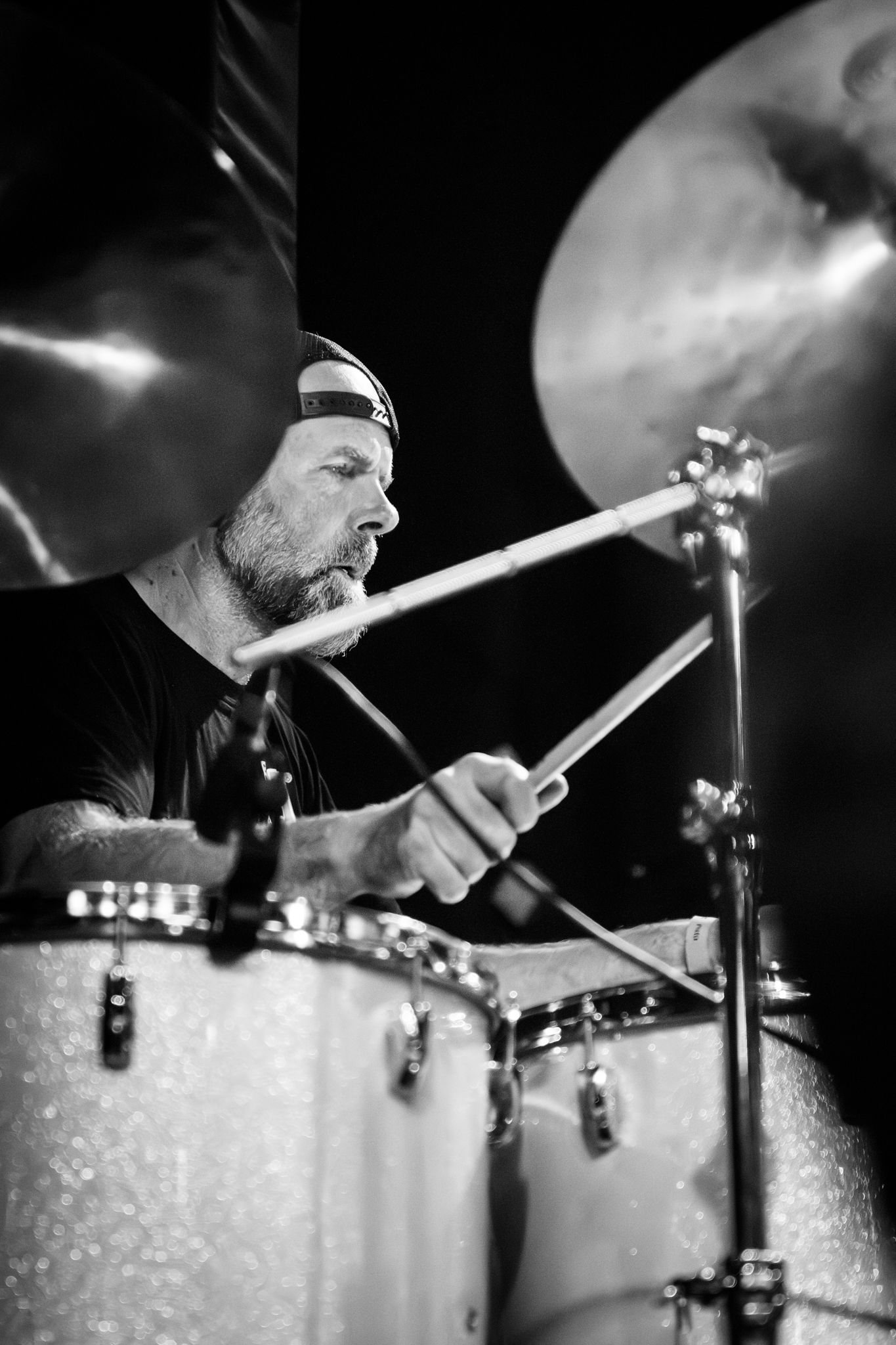 (cujo só um aparentava estar ligado) e bateria dos headliners já estando montadas, o que relegou os nativos do Kentucky a ficarem apertados na metade restante do espaço, com o baterista